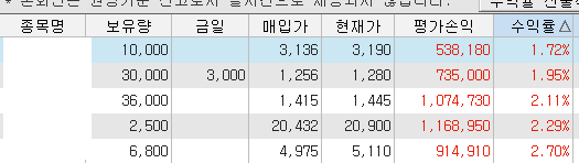 회원분들의 매매성향에 따른 손실난 종목도 존재하지만 현재 제가 보유한 종목은