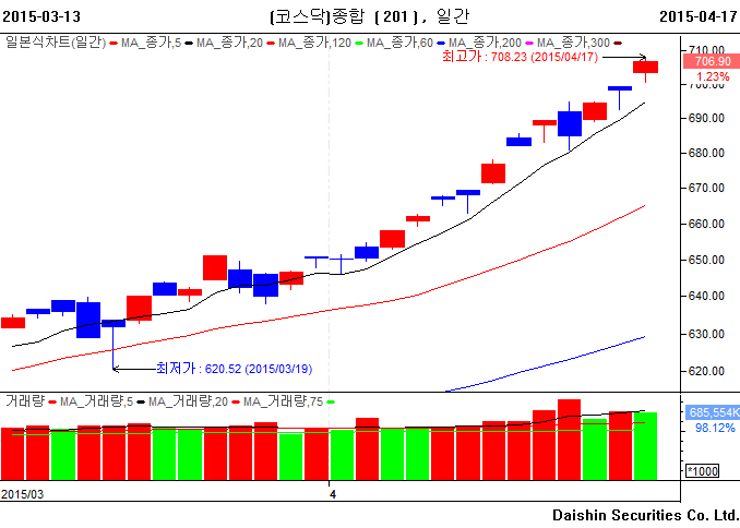 국내시장의 모습도 그동안 꾸준히 상승세를 지속시켜왔으며 단기간에 쉬지않고 올라온 부분이 있어 어느정도는
