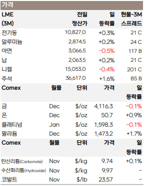 전일 비철은 민간 고용 부진에 따른 금리인하와 셧다운 종료 기대감에 전반적으로 강보합으로 마감했습니다.