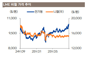 한편, 공급 부진에도 불구하고 재생 에너지 및 AI 인프라와 연계된 전력망 투자 증가에 힘입어 구리 수요는 지속적으로 증가하고 있습니다. 이러한 견조한 수요, 낮은 재고, 부진한 공급 때문에 구리 가격이 구조적인 강세 국면에 진입할 것으로 예상됩니다.