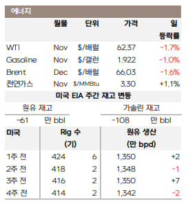 전일 유가는 OPEC+의 11월 증산 폭 확대 가능성과 이라크 쿠르디스탄 지역의 원유 수출 재개로 공급 과잉 우려가 커지면서 하락 마감했습니다.