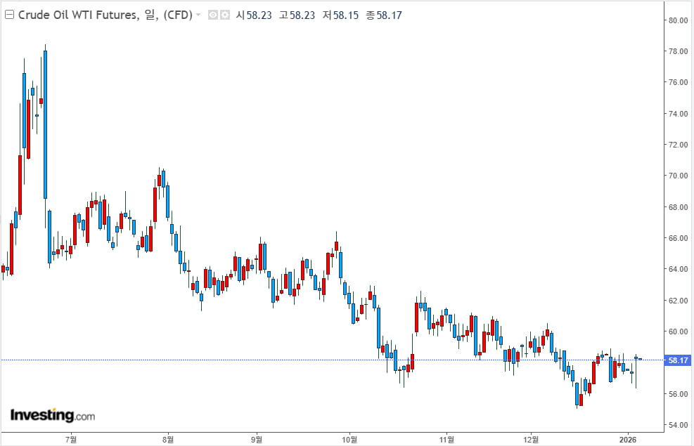 미국의 마두로 체포 이후 베네수엘라 원유 공급 불확실성이 커지면서 유가는 1% 상승 마감했습니다.