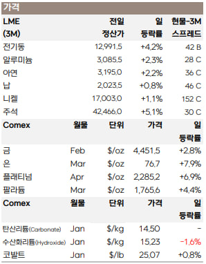 전일 비철금속은 미국의 베네수엘라 침공 사태로 핵심 광물 확보 경쟁이 가속화될 것이라는 전망에 상승했습니다.
