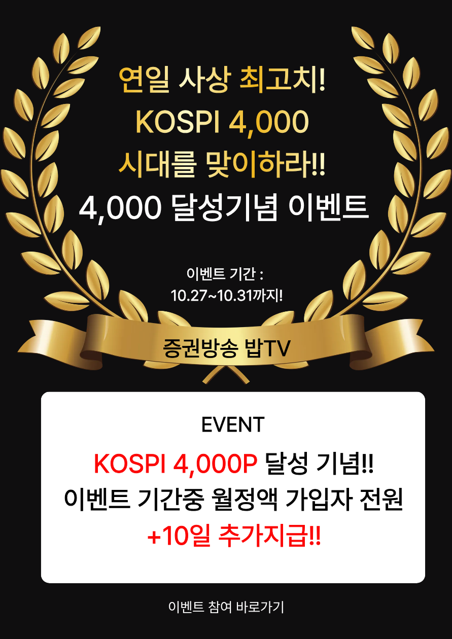 <특별이벤트> 연일 사상 최고치 기록중!!! KOSPI 4,000P 시대를 맞이하라!!!