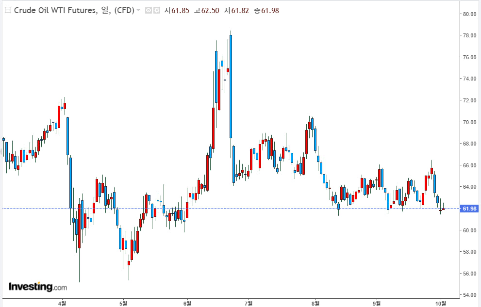 서부 텍사스산 원유(WTI)는 배럴당 $61.78에 마감하며 지난 5월 말 이후 가장 낮은 수준을 보였습니다.