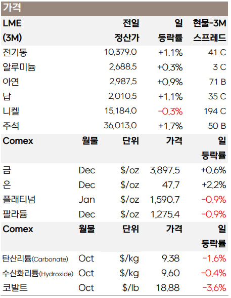 달러로 거래되는 원자재는 달러 가치가 하락하면 다른 통화 보유자들의 구매력이 높아져 가격이 오르는 경향이 있습니다. 다만, 최대 소비국인 중국이 국경절 연휴(10/1~8)로 휴장 중이어서 거래량이 적은 만큼, 향후 변동성이 커질 수 있다는 점은 유의해야 합니다.
