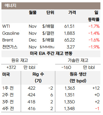 이번 OPEC+의 결정은 최근의 공급 과잉 우려와 지정학적 리스크 완화 분위기 등을 반영한 것으로 풀이됩니다. 다만, 이번 결정을 시작으로 감산량을 되돌리는 '증산 사이클'이 본격화되었다는 점, 그리고 4분기 OPEC+발 공급 과잉 우려가 계속되고 있다는 점을 고려하면 유가의 하방 압력은 여전히 우세할 것으로 전망됩니다. 다음 회의는 11월 2일에 열릴 예정입니다.