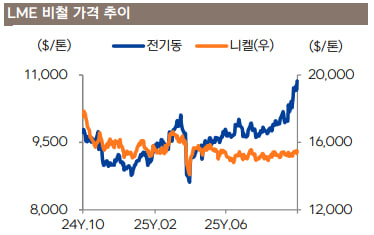특히 구리 가격은 캐나다 광산 기업인 '테크 리소시스(Teck Resources)'의 감산 소식에 장중 3% 이상 급등하며, 작년에 기록했던 역대 최고치인 톤당 11,100달러에 근접했습니다.