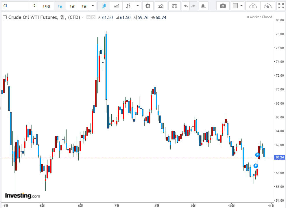 전일 유가는 1.9% 하락하며 $60.15를 기록했습니다.
