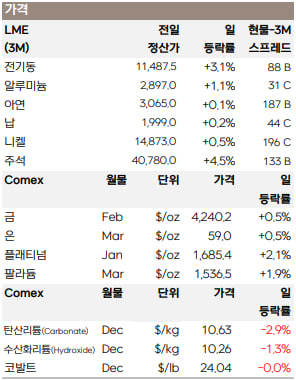 전일 비철금속은 달러 약세와 공급 우려에 상승했고, 그중에서도 전기동 가격은 사상 최고치($11,540)를 다시 경신했습니다.