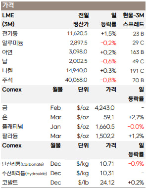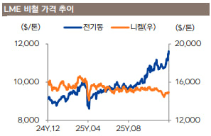 아연과 니켈 등 다른 비철금속도 강보합세를 유지한 반면, 알루미늄, 주석, 납은 소폭 약세를 보였습니다.