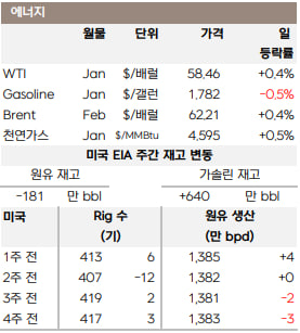 겨울철 난방 관련 수요가 증가함에 따라 재고 감소 시즌 초입에 접어들면서 예년보다 2,000만 배럴가량 낮은 재고가 주목받고 있습니다. 다만, 이러한 낮은 재고 수준은 미국 내 수요가 크게 개선된 것보다는 원유 수입이 예년보다 감소하고 원유 수출이 증가한 영향이 큰 만큼, 향후 수출입 관련 데이터에 더욱 주목도가 높아질 전망입니다.