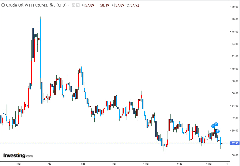 전일 유가는 러시아-우크라이나 간 평화협상 기대가 높아지며 향후 러시아산 공급이 더 풀릴 수 있다는 전망이 겹쳐 1.5% 하락한 57.60달러로 마감했습니다.