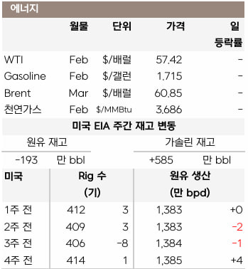 현재 시장은 단기 예보가 하향 조정되면서 최근 상승세 일부를 반납하고 있으나, 단기적으로는 미국 중서부와 북동부의 강풍과 한파가, 중기적으로는 가장 추운 달인 1월 중순의 수요 기대가 여전히 천연가스 가격 하단을 지지하고 있습니다.