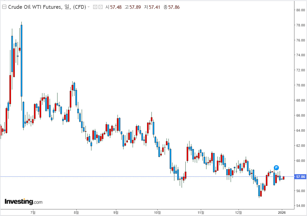 2025년 WTI는 지정학적 리스크가 상존했음에도 불구하고, 공급 과잉 우려가 이를 상쇄하며 연간 약 20% 급락해 2020년 이후 최대 연간 낙폭을 기록했습니다.