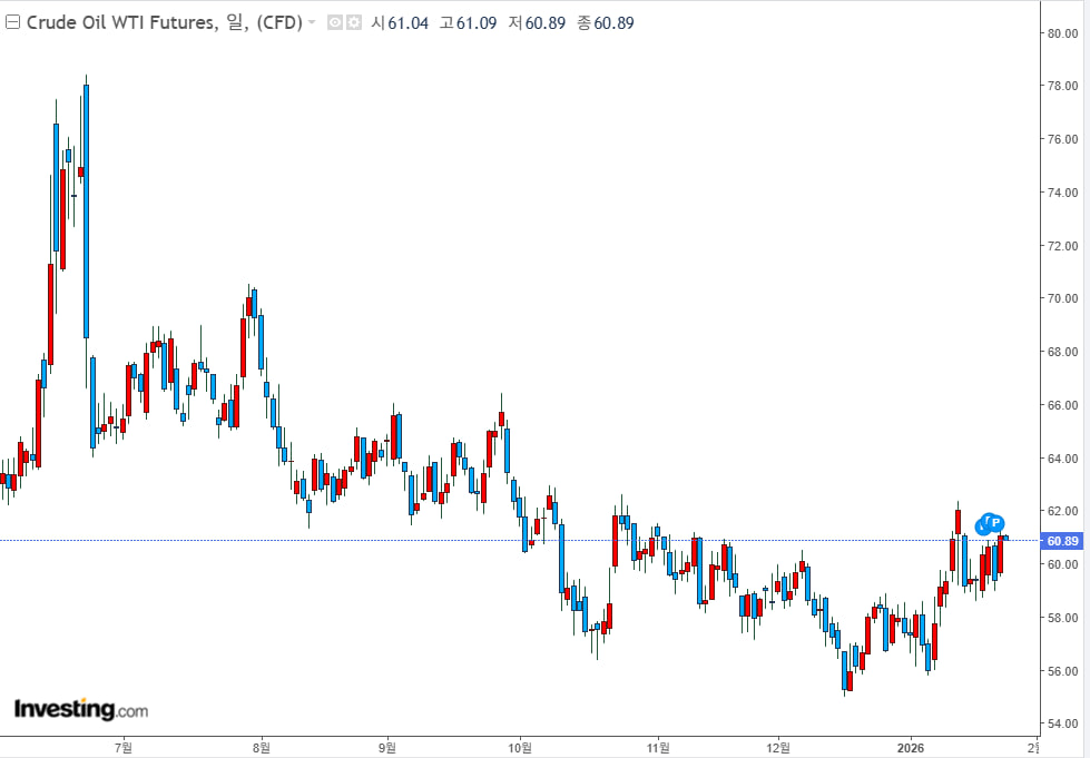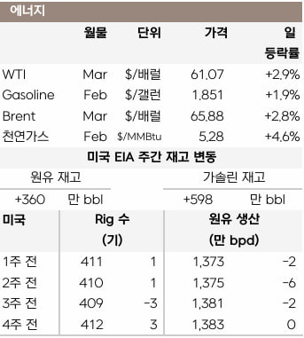 한편 카자흐스탄 텡기즈 유전이 화재 이후 아직 재가동되지 않아, 1월 카자흐스탄 원유 생산량이 평소 180만 bpd 수준에서 현재 100만 bpd 수준으로 낮아진 점도 공급 차질 이슈를 부각했습니다.