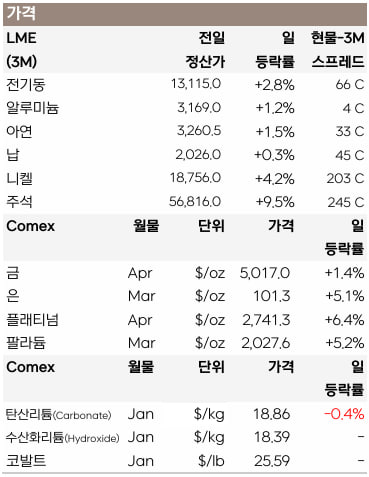 최근 리튬 가격은 ESS 성장 전망과 CATL 재개 불확실성, 그리고 중국 배터리 수출 환급 폐지를 앞두고 미리 수출 물량을 확보하려는 경쟁으로 인해 11월 초 이후 두 배 올랐습니다. 수요 기대와 공급 불안이 맞물리며 극단적인 변동이 빈번해지고 있습니다.