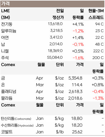전일 갑작스러운 중국의 대규모 매수세에 비철 가격은 급등했으나 장중 일제히 급락했고, 투기 열풍을 주도했던 전기동만이 4.1% 상승 마감했습니다.