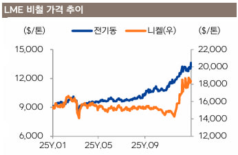 전일 전기동 가격은 16년 만에 최대 폭으로(+11%) 급등하며 톤당 $14,527라는 기록적인 사상 최고치를 경신했으나, 런던 오후장 들어 미국 마이크로소프트 실적 실망감에 따른 기술주 투매로 글로벌 위험 회피 심리가 확산하자 급격하게 하락하며 시장 역사상 가장 극적인 움직임을 보였습니다.